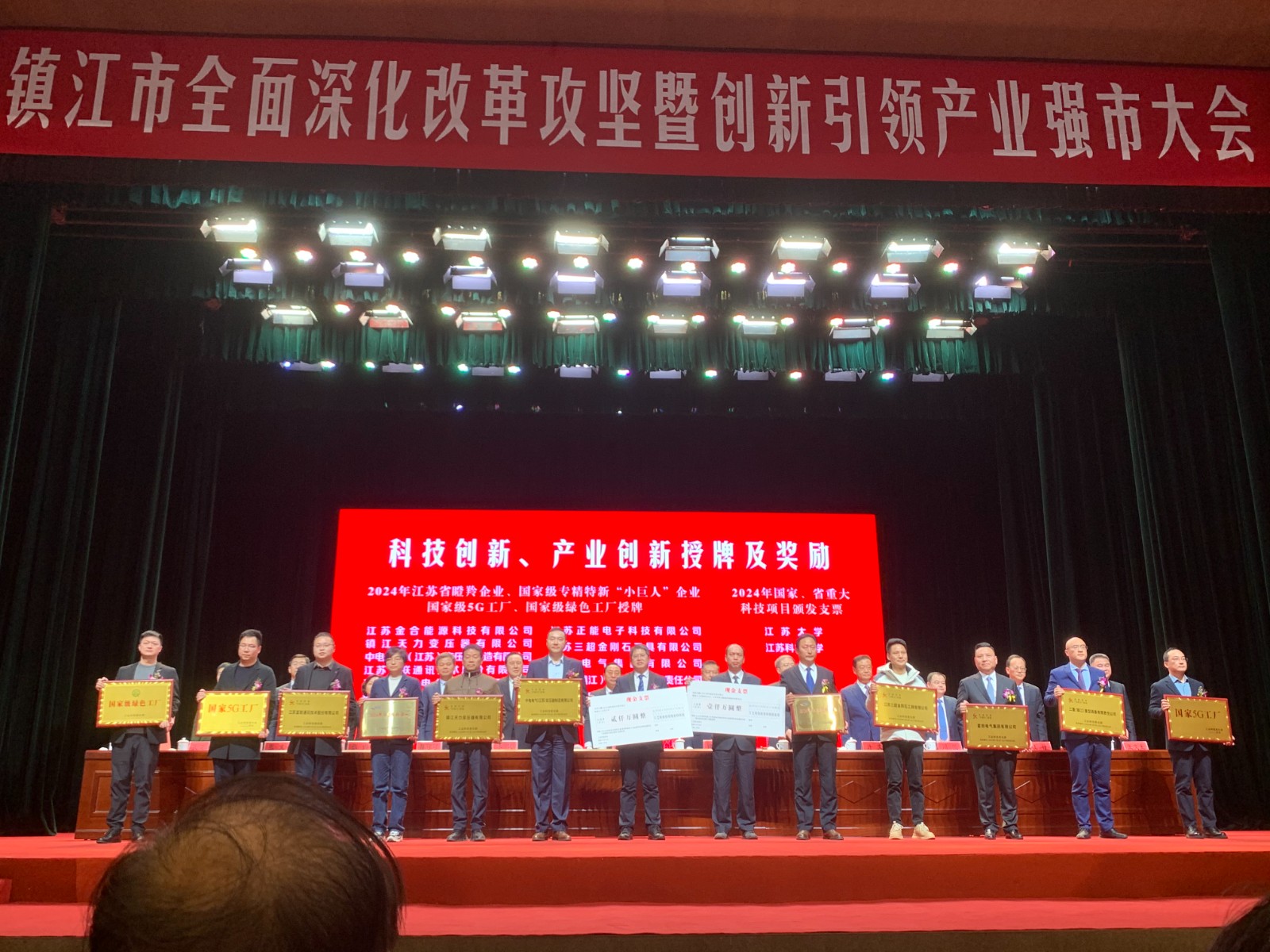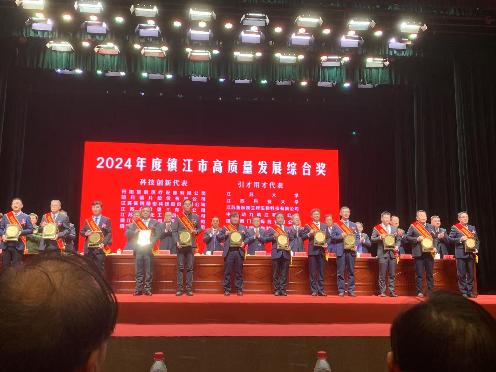 会议旨在深入学习贯彻党的二十大精神以及习近平总书记对江苏、镇江工作重要讲话精神,认真落实省委、省政府部署要求,深化改革攻坚、强化创新引领,久久为功发力产业强市。同时,会上发布了2024年“镇江市高质量发展综合奖”,为获奖单位授牌,颁发了2024年国家重点研发计划项目、省重大专项项目支票。我校在“引才用才”“科技创新”领域获得大奖。