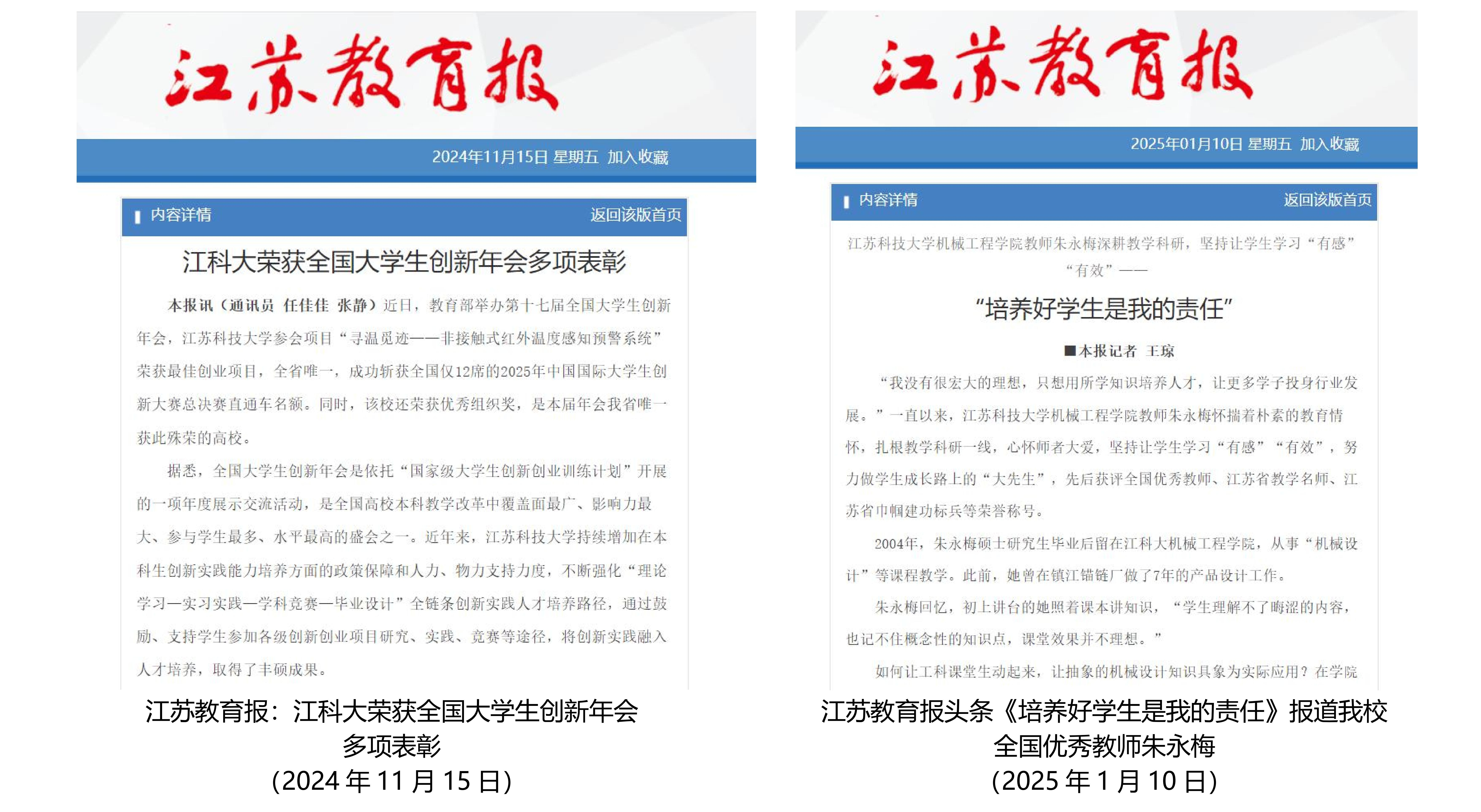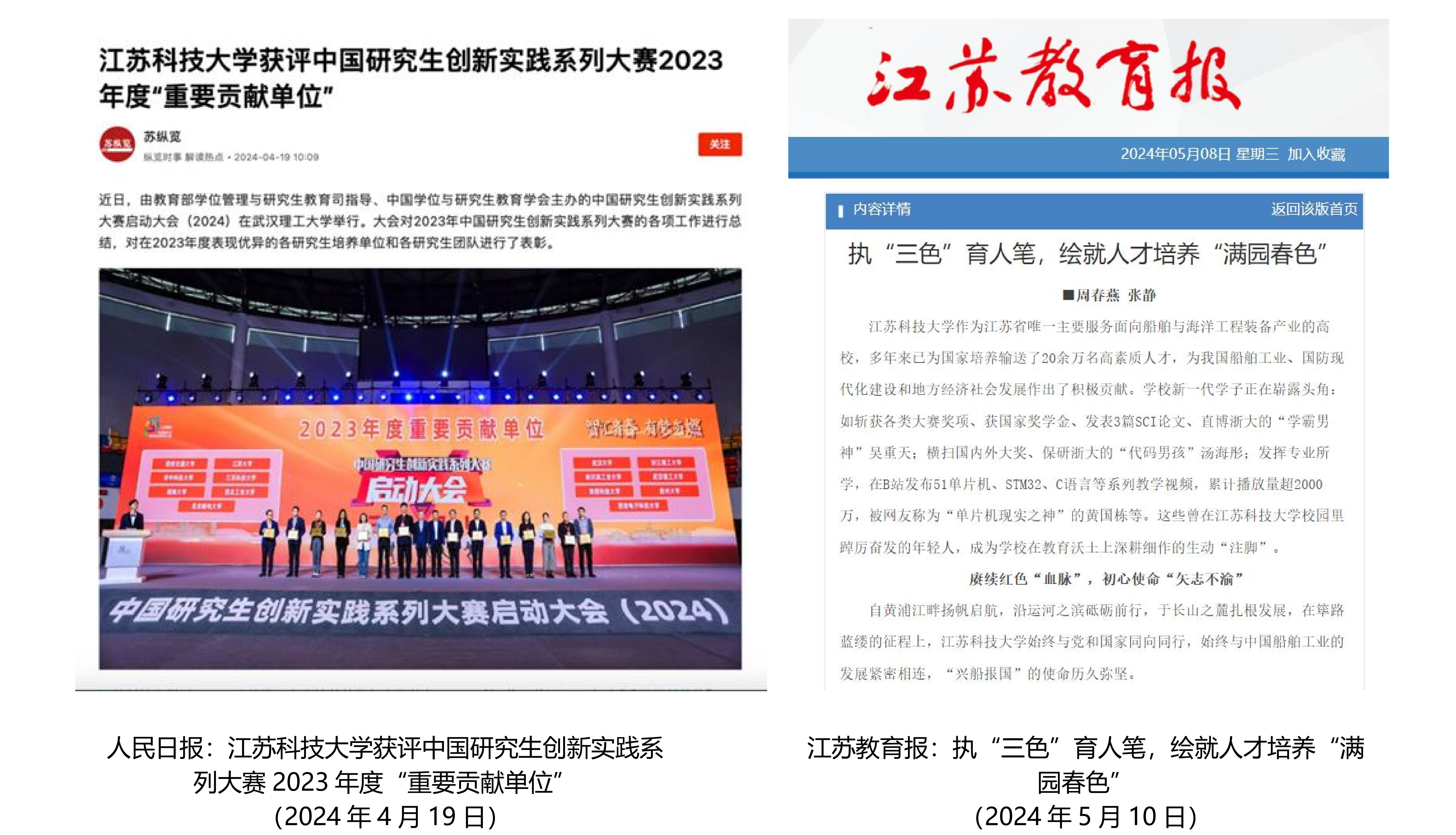 学校获评江苏教育新闻宣传工作优秀单位,《MILAN.COM米兰(中国)报》在社会效益考核中获“优秀”等次,获评“船舶新闻优秀报刊奖”。新媒体矩阵粉丝量浏览量大幅提升,上榜全国高校官方视频号综合影响力百强榜单;获评中国大学生在线“优秀校园网络通讯站”、中青网年度优秀校园新闻专题。