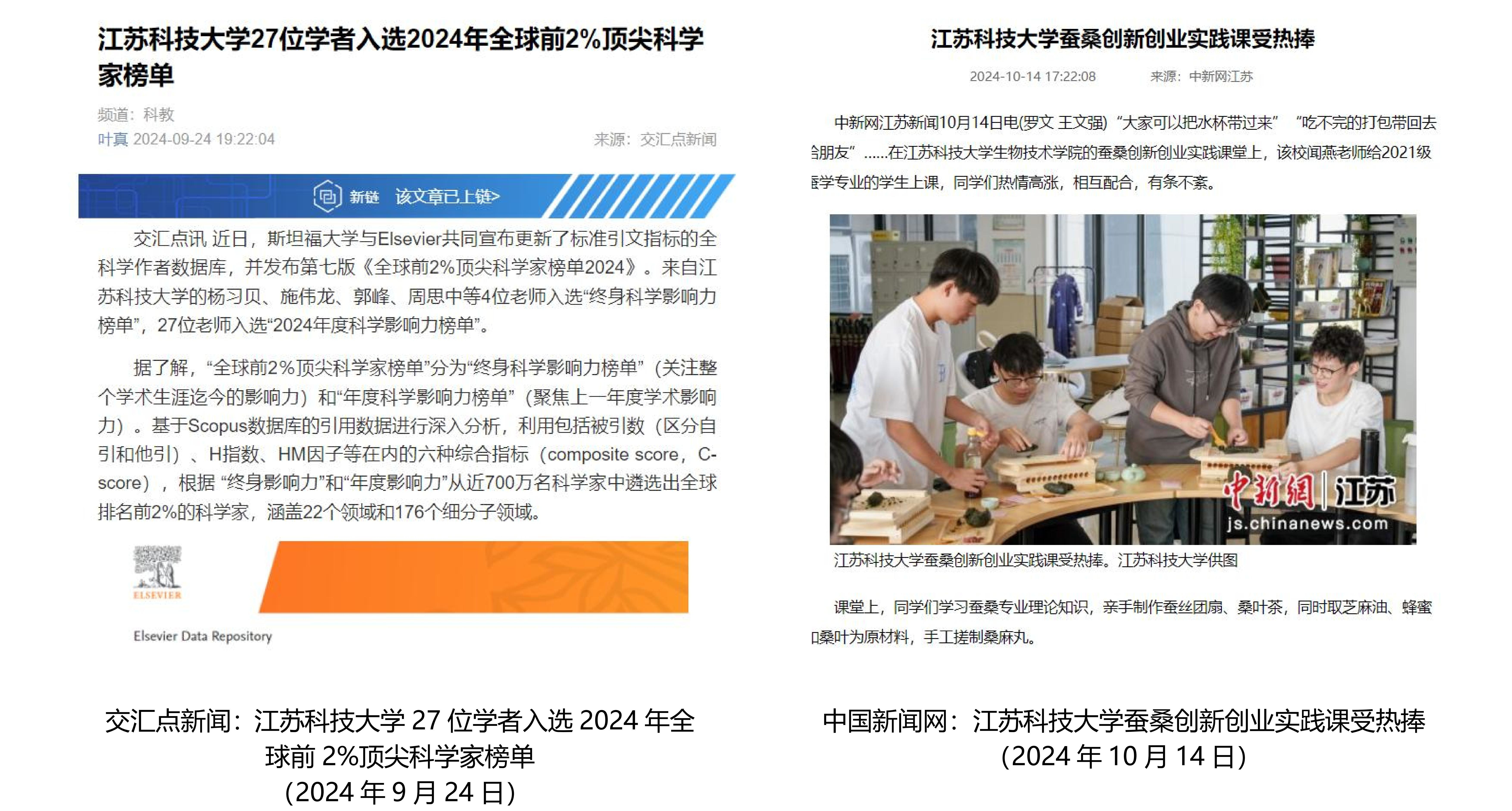 中央电视台、央视新闻多次报道学校深化产教融合,服务船舶海工产业科技创新;中国船舶报、新华日报、江苏科技报等媒体深度报道学校办学90周年,校史馆揭幕开馆;人民日报、新华社、科技日报等深度报道学校首次以第一单位在《Nature》发表研究论文,新华日报跟进报道该成果落地转化动向;新华日报深度报道学校科技助力国产首艘大型邮轮建造;中国船舶报、新华日报、江苏省教育厅官网等报道学校牵头江苏省高技术船舶和海工装备产业链党组织联建共建;中国新闻网报道学校趣味蚕桑课程受学生热捧;与央视网共创《我的大学超酷》播放量超百万……