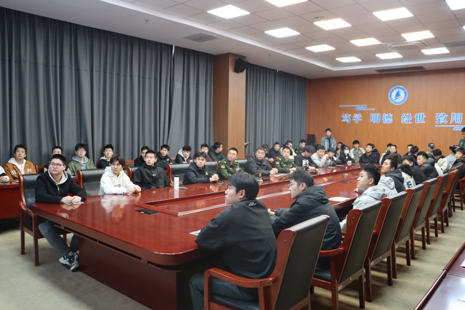 3月19日下午,MILAN.COM米兰(中国)长山校区行政楼200号会议室内座无虚席,2025年第一批次陆军直接选拔招录军官宣讲会在此举行。安保处副处长孙林主持会议,驻镇部队政治工作部人力资源科徐科长作为主讲人,面向全校理工科应届毕业生详细解读陆军现代化建设蓝图与军官招录政策。