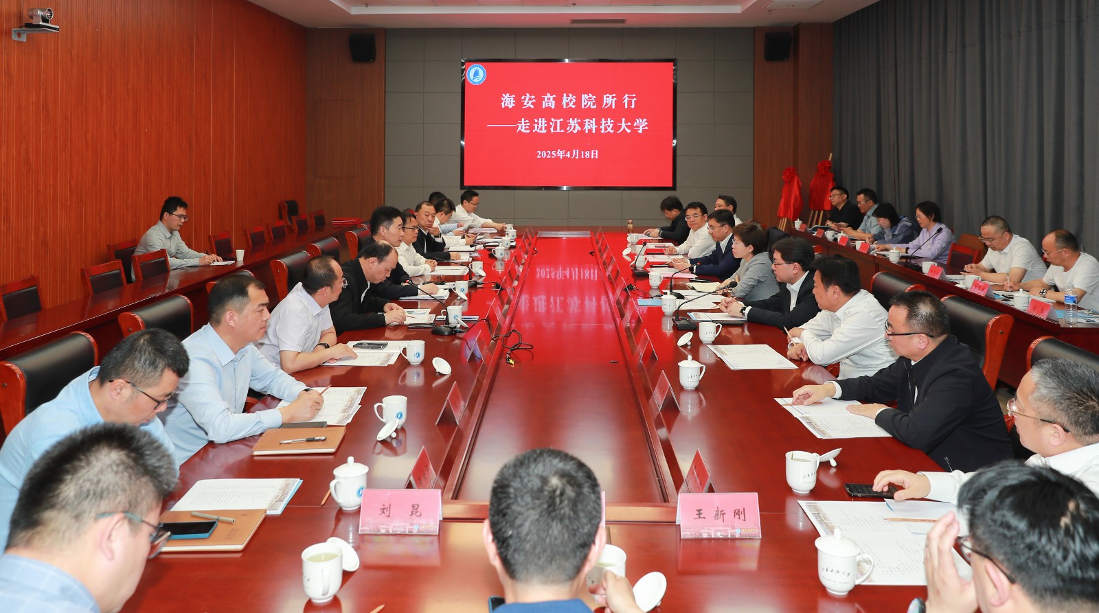 赵男男对学校的热情接待表示感谢。她表示,江科大在船舶海工领域的科技创新中具有鲜明特色,在船舶行业人才培养中也有很高的地位,为江苏省船舶工业和经济社会高质量发展作出了积极贡献。近年来,海安市紧紧围绕“枢纽海安、科创新城”战略定位,抢抓长三角一体化发展等国家战略机遇,主动融入长江口产业创新绿色发展协同区建设,争当跨江融合发展先行区,城市创新发展水平和综合实力不断攀升。海安市全面构建以高端纺织、高端装备、新材料、新能源、新一代信息技术为主导的“五群十链”现代产业体系。此次走访希望在重大科技项目、科技成果转化、人才培养等方面与学校深化合作,推动科技创新与产业升级同频共振,提升产业核心竞争力,赋能新质生产力发展,共同服务高技术船舶企业发展。