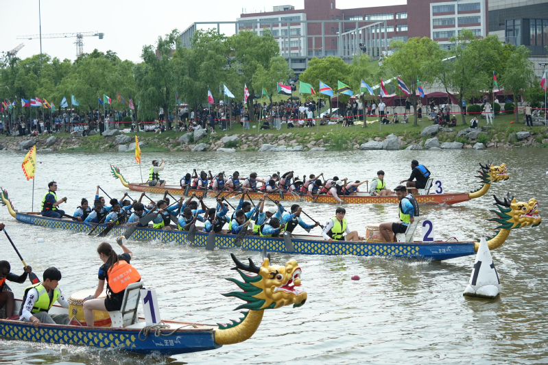 5月24日,“感知中国——第十五届上海高校暨第三届长三角高校外国留学生龙舟赛”在华东理工大学奉贤校区的通海湖上火热开赛。大赛由国家留学基金管理委员会、上海市教育委员会、上海教育国际交流协会国际学生教育研究工作委员会主办,来自江浙沪皖33所高校的留学生代表队齐聚一堂,展开了一场速度与激情的较量。我校海外教育学院首次组建的留学生龙舟队以优异成绩勇夺亚军,为学校赢得了荣誉。