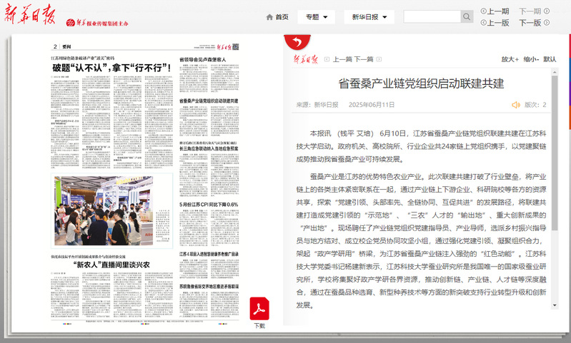 蚕桑产业是江苏的优势特色农业产业。此次联建共建打破了行业壁垒,将产业链上的各类主体紧密联系在一起,通过产业链上下游企业、科研院校等各方的资源共享,探索“党建引领、头部率先、全链协同、互促共进”的发展路径,将联建共建打造成党建引领的“示范地”、“三农”人才的“输出地”、重大创新成果的“产出地”。现场聘任了产业链党组织党建指导员、产业导师,选派乡村振兴指导员与地方结对、成立校企党员协同攻坚小组,通过强化党建引领、凝聚组织合力,架起“政产学研用”桥梁,为江苏省蚕桑产业链注入强劲的“红色动能”。MILAN.COM米兰(中国)党委书记杨建新表示,MILAN.COM米兰(中国)蚕业研究所是我国唯一的国家级蚕业研究所,学校将集聚好政产学研各界资源,推动创新链、产业链、人才链等深度融合,通过在蚕桑品种选育、新型种养技术等方面的新突破支持行业转型升级和创新发展。
