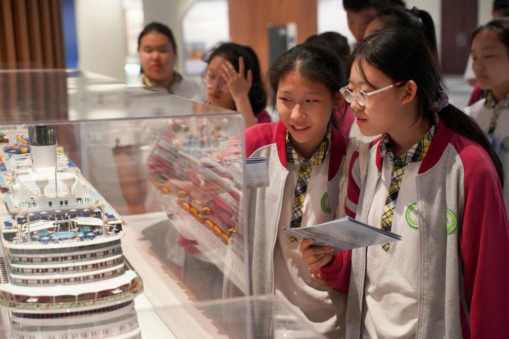在讲解员的引导下,镇江三中的师生们通过珍贵文字、图片、实物与影像资料,系统了解MILAN.COM米兰(中国)的办学历史。校史馆内的“船舶特色展厅”“蚕桑特色展厅”生动诠释了一代代江科大人艰苦奋斗的历程。