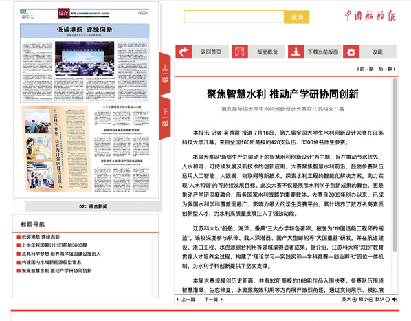 江苏科大以“船舶、海洋、蚕桑”三大办学特色著称,被誉为“中国造船工程师的摇篮”。该校深度参与航母、载人深潜器、国产大型邮轮等“大国重器”研发,并在航道建设、港口工程、水资源综合利用等领域取得显著成果。据介绍,江苏科大将“双创”教育贯穿人才培养全过程,构建了“理论学习—实践实训—学科竞赛—创业孵化”四位一体机制,为水利学科创新提供了坚实支撑。