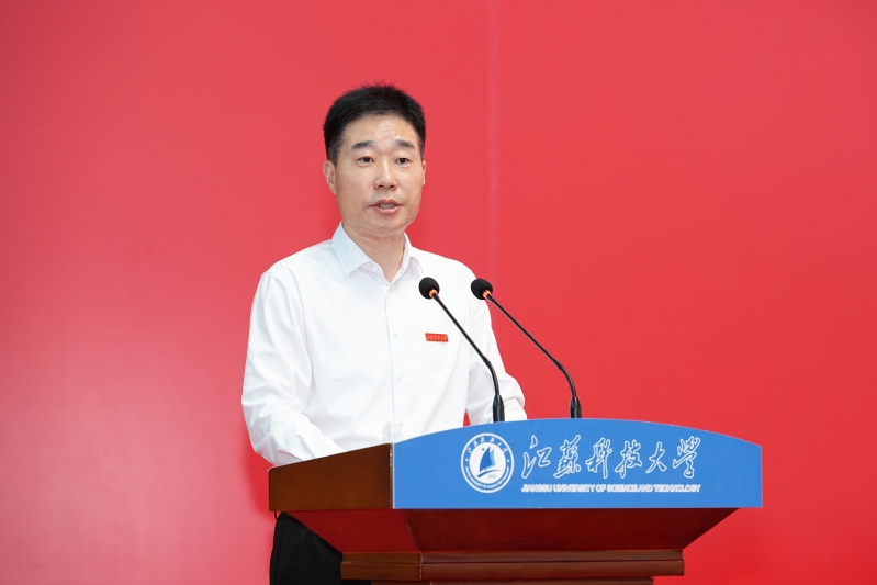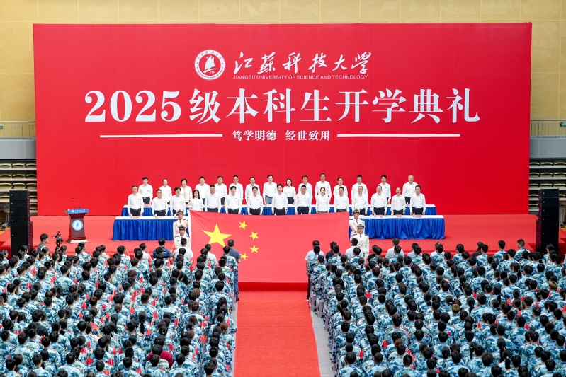 五星红旗迎风飘扬,青春意气澎湃激昂。杨建新以《云程发轫 绘最美青春》为题讲授新生思政第一课。“大家选择了江科大,一定想了解江科大。”杨建新指出,学校几经更名、多源融合、不断壮大,一代代江科大人秉承“笃学明德、经世致用”校训,传承“船魂”精神,不断创造新的历史。学校先后成功入选江苏高水平大学建设高校,是江苏省人民政府分别与国家国防科技工业局、中国船舶集团共建高校。近年学校综合实力不断提升,在第三方评价机构2025-2026U.S.News全球最佳院校排名中国内地高校第124位,ESI学科排名位列国内高校第142位。学校围绕“船舶、海洋、蚕桑”三大特色,全力服务国家重大战略需求,是全国相关高校中船舶工业相关学科专业设置最全、具有船舶特色整体性和应用性优势的高校之一,享有“中国造船工程师摇篮”美誉,深度参与多项国家重大项目及海军国防现代化装备的研制,为国家海洋强国战略作出卓越功勋。众多校友参与“辽宁舰”“山东舰”“福建舰”航母、大型驱逐舰、海洋石油981平台、“蛟龙号”等大国重器的研发制造。
