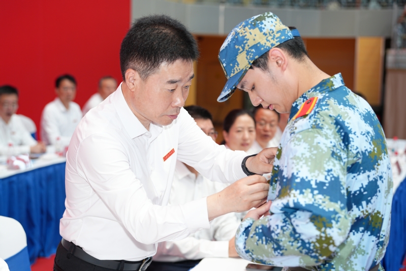 徽耀青春,志承船魂。杨建新为新生代表颁授校徽,祝愿他们承载学校的传统与精神,在江科大扬帆起航。