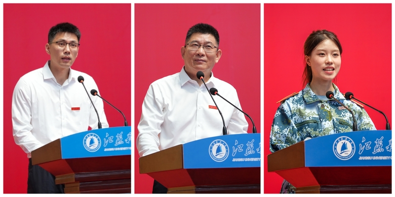 教师代表,国家级青年人才项目入选者、船舶与海洋工程学院程勇教授与新生分享关于大学规划方面的思考,勉励新生厚植根基、心怀家国,锚定奋斗方向,到祖国最需要的地方建功立业,成为母校新的骄傲。校友代表,1985届电子计算机专业校友、国泰新点软件股份有限公司总裁黄素龙分享了创业经历,鼓励新生用远大的目标定义人生的高度,坚持“长期主义”,团结诚信、互利共赢、追求卓越。新生代表、计算机学院雷超琪同学展望即将开始的大学生活,愿携手全体新生一同纵横学海,奔赴熠熠生辉的未来。