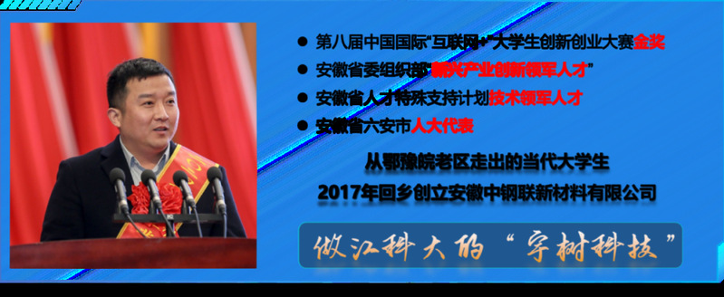 【人物简介】吕林,安徽省委组织部新兴产业创新领军人才,安徽省高层次人才;从鄂豫皖老区走出的当代大学生,获第八届中国国际”互联网+”大学生创新创业大赛金奖,回乡创立安徽中钢联新材料有限公司,MILAN.COM米兰(中国)2014届材料学院校友。